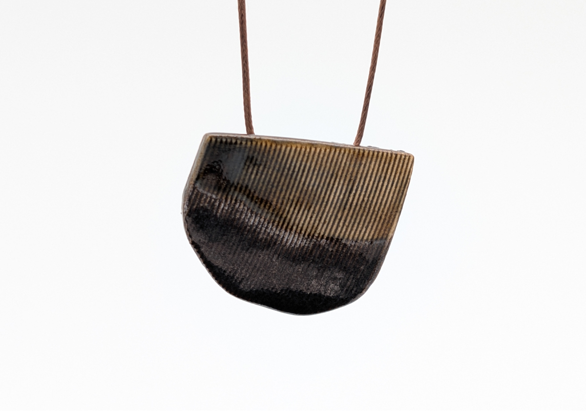 Unikatowy wisiorek ceramiczny, ręcznie wykonany z gładkiej, jasnobeżowej gliny, szkliwiony, dwukrotnie wypalany w piecu ceramicznym. Pojedynczy, niepowtarzalny egzemplarz.Wymiary ok. 3,5 cm x 3 cm.